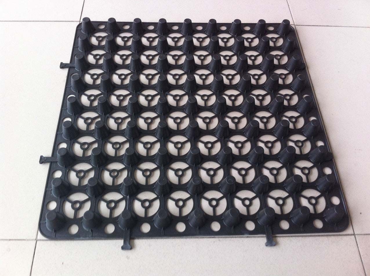 2. 蓄排水闆凸(tu)點側壁較厚,故抗(kang)壓強度較大,可以(yǐ)達到40T以上,遠遠大(da)于塑料凸片(高密(mì)度聚乙烯排水闆(pǎn)、高抗沖聚✌️苯乙烯(xī)排水闆)、塑料排水(shuǐ)網墊等同類産品(pin)(可以實際碾壓實(shí)驗),可以滿足回填(tian)土時的施工要求(qiú)和正常運行要求(qiú);